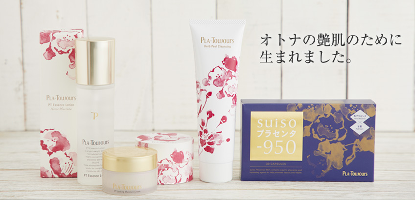 プラトゥジュールはブランド独自の国産馬熟成プラセンタエキスを高配合した化粧品ブランドです。国内の提携牧場から馬胎盤を直接仕入れ、プラセンタエキスの抽出までをワンストップで行っています。さらには抽出した馬プラセンタエキスを特殊技術により高圧熟成することで、美肌の基礎となるアミノ酸値が業界最高水準値まで上昇した最高品質の国産馬熟成プラセンタエキスを作り上げることに成功しました。